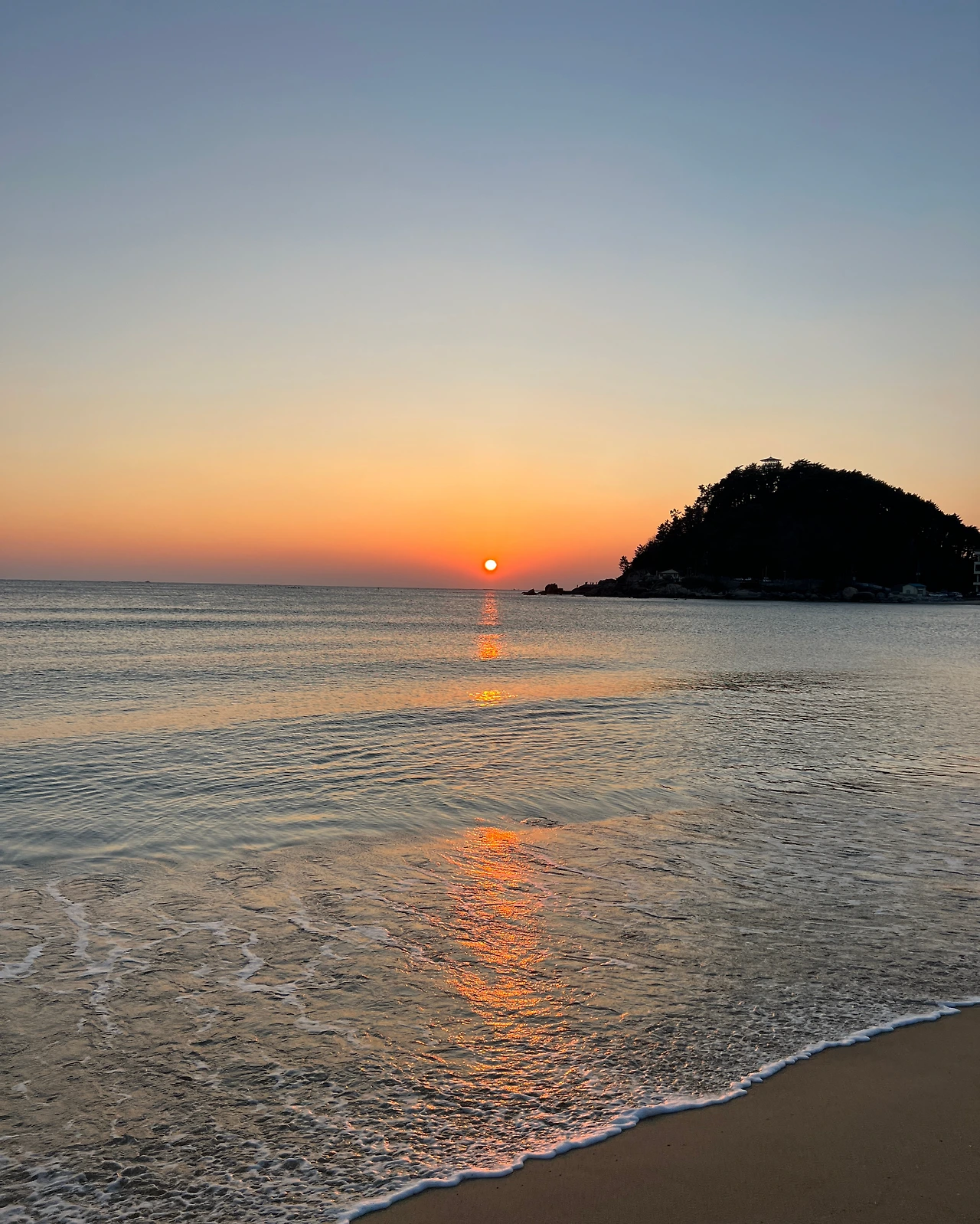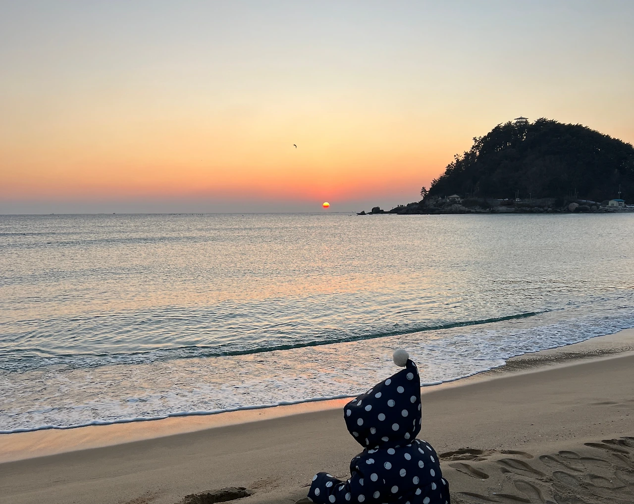 우리 아기도 이제 두 발로 서서 첫 일출을 보고- 와아 와-