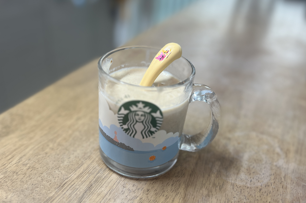 그런다음엔 밤을 갈아내고, 우유와 함께 한소끔 끓인뒤, 설탕을 유감없이 섞기만 하면 끝. 바깥양반을 위한 아침 특선 밤라떼 완성이다.