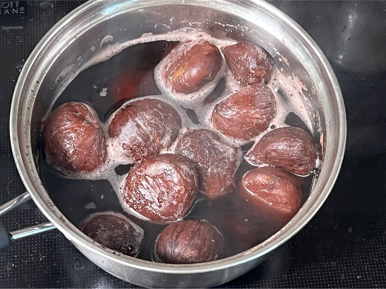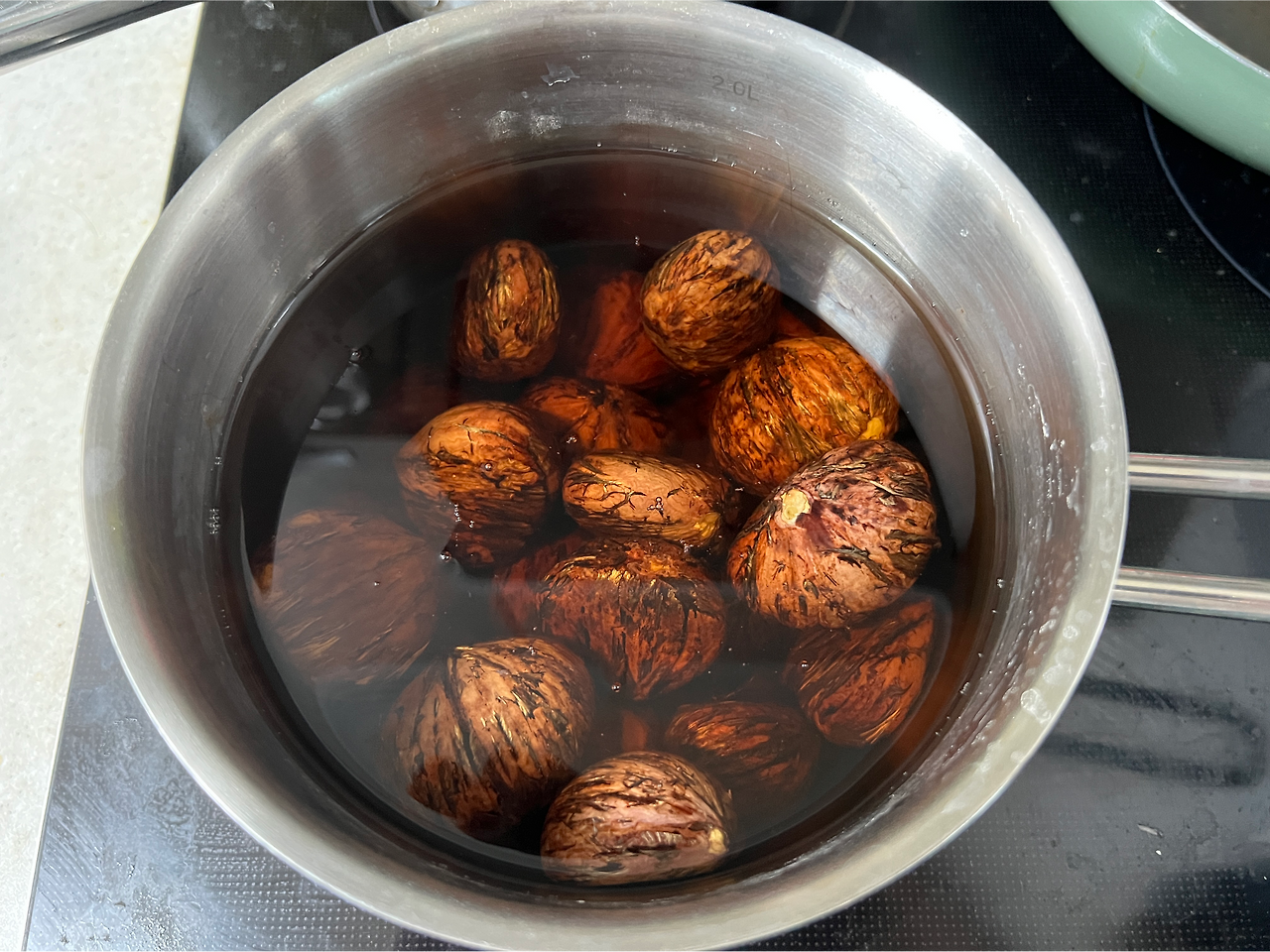 구증 구포는 아니고 삼증 삼포려니, 베이킹소다 담궜던 물을 그대로 써서 첫번째 30분. 그리고 헹궈낸 새 물에 30분씩 두번. 이렇게 세번을 끓여야 밤조림의 밑작업이 된다. 보통은 여기까지만 해도 지나치게 번거롭다고 저어하나본데, 나로선 이게 그리 어려운 작업이 아니다. 주방살이야 그렇지 뭐.