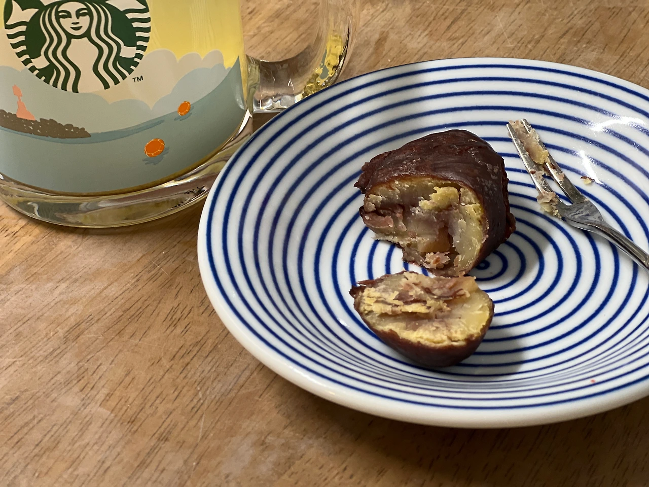 다음날 아침...나는 밤을 삶으며 숟가락으로 탁탁 쳐서 부순다. 그리고 자작하게 졸인다. 그보단, 살짝 태운다. 그냥 밤을 삶기만 하면 풍미가 충분하지 못할 것이므로. 살짝 밤을 그슬러서, 군밤의 향을 흉내내보는 것.