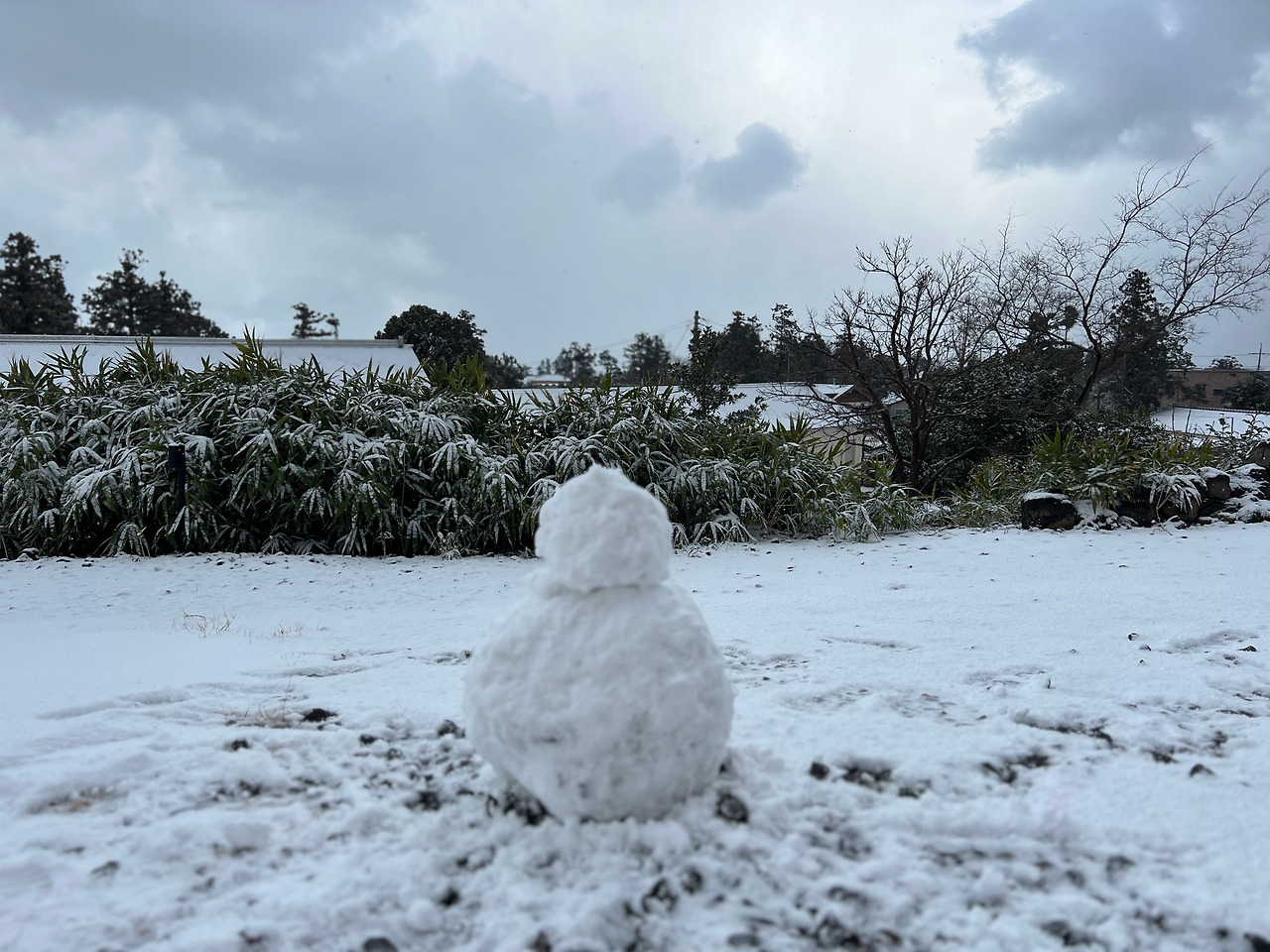 허리를 펴며 뒤를 보니 돌아온 길엔 고스란히 내가 눈을 굴려온 흔적이 이어져있다. 제주도엔 마침내 폭설이었고, 나는 아이에게 첫 눈사람을 선사해줄 날이 바로 오늘이라고 생각했다. 눈덩이는 쉽게 굴려졌다. 설경을 구경하기 위해 찾은 카페는 주차장으로부터 건물까지 낮은 언덕을 잠시 걸어야 했다. 50미터나 될까 싶은 그 길을 잠시 걸으며 허리를 굽혀 눈덩이를 굴리는 것만으로도, 농구공보다 큰 눈사람의 몸통은 만들어졌다.