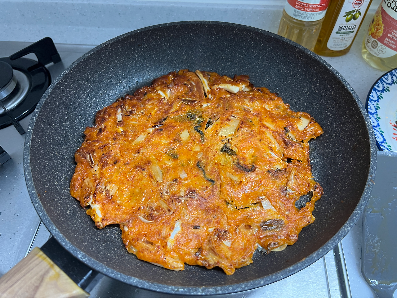 밤은, 김치전으로 했다. 저녁을 바다가 보이는 흑돼지집에서 먹고, 집에 와 아이를 재우고 난 뒤 야식 상을 차린다. 첫날은 딱새우와 생선회, 오늘은 무려 한마리에 5천원 하는 냉동 오징어를 사서 썰어 김치전. 근데 이 오징어가 꽤 재밌다. 농협마트에 가서는 냉동 오징어가 물경 두마리에 만원이나 하길래 놀라며 겨우 집었는데, 또 해서 먹어보니 굉장히 맛이 좋다. 생물이라고 해도 믿을 맛이다. 제주도에서 잡은 오징어일까 싶다. 먼 바다에서 잡아와서 냉동과 해동을 번갈아 한 놈이라면 이 맛일 리가 없다.
