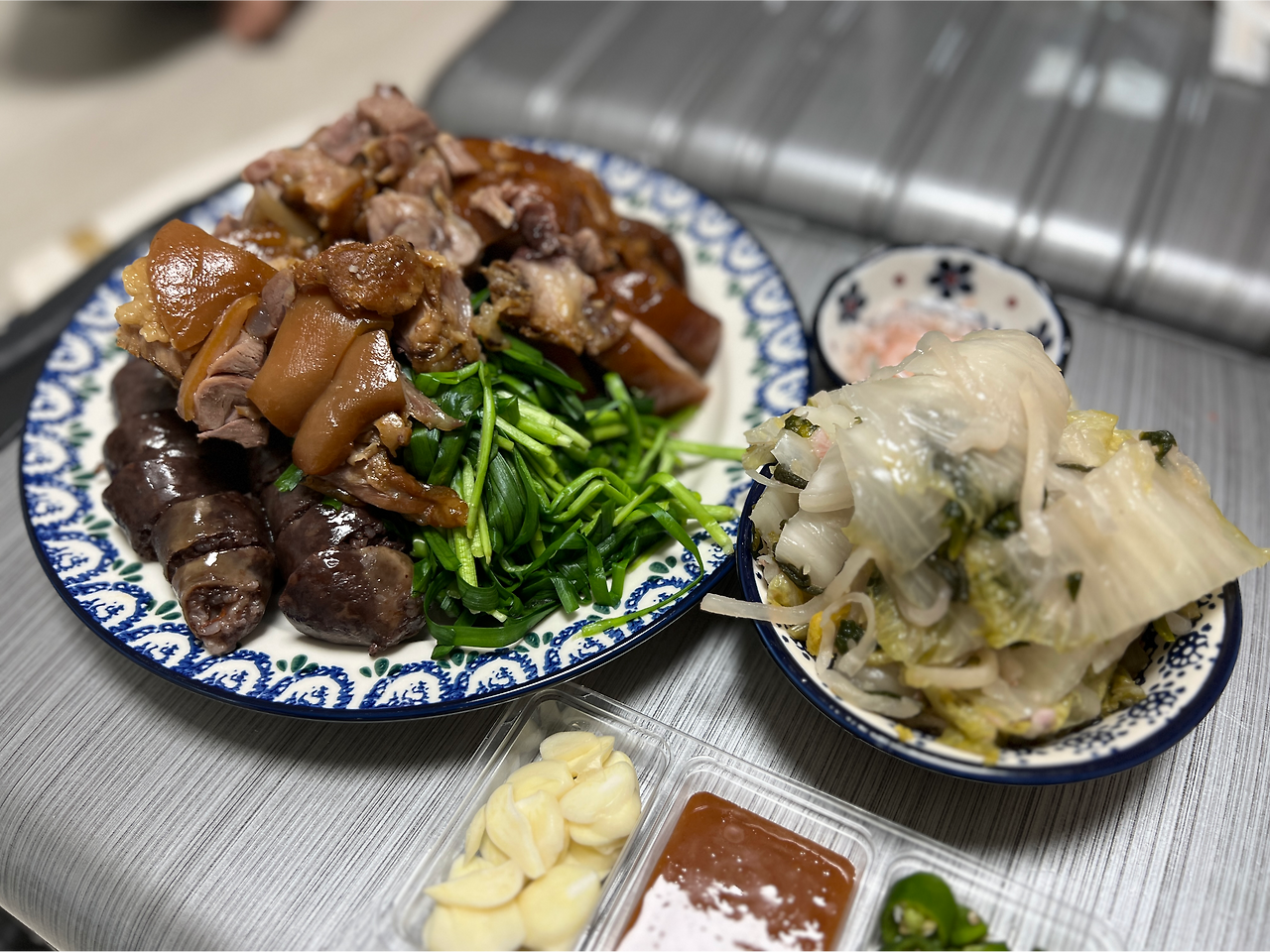 순대에 칼을 대자 마자 속까지 폴폴 끓여져서 뜨끈뜨끈하니 수증기가 피어오른다. 제법 뜨겁다. 손을 후후 불며 예쁘게 썰어낸다. 접시에 부추와 순대를 차근히 담는다. 그런데 족발은 좀 말썽이다. 기름기가 가득해, 이리 저리 굴려가며 살을 뼈에서 발라내는데 쉽지 않다. 못할 정도는 아니고 딱 쉽지 않은 정도다. 아강발 쪽은 떼어내서 빼두고, 접시 사이즈에 맞게 다리에서 앞뒤로 발라낸 살들을 펴 잘 썰어본다.