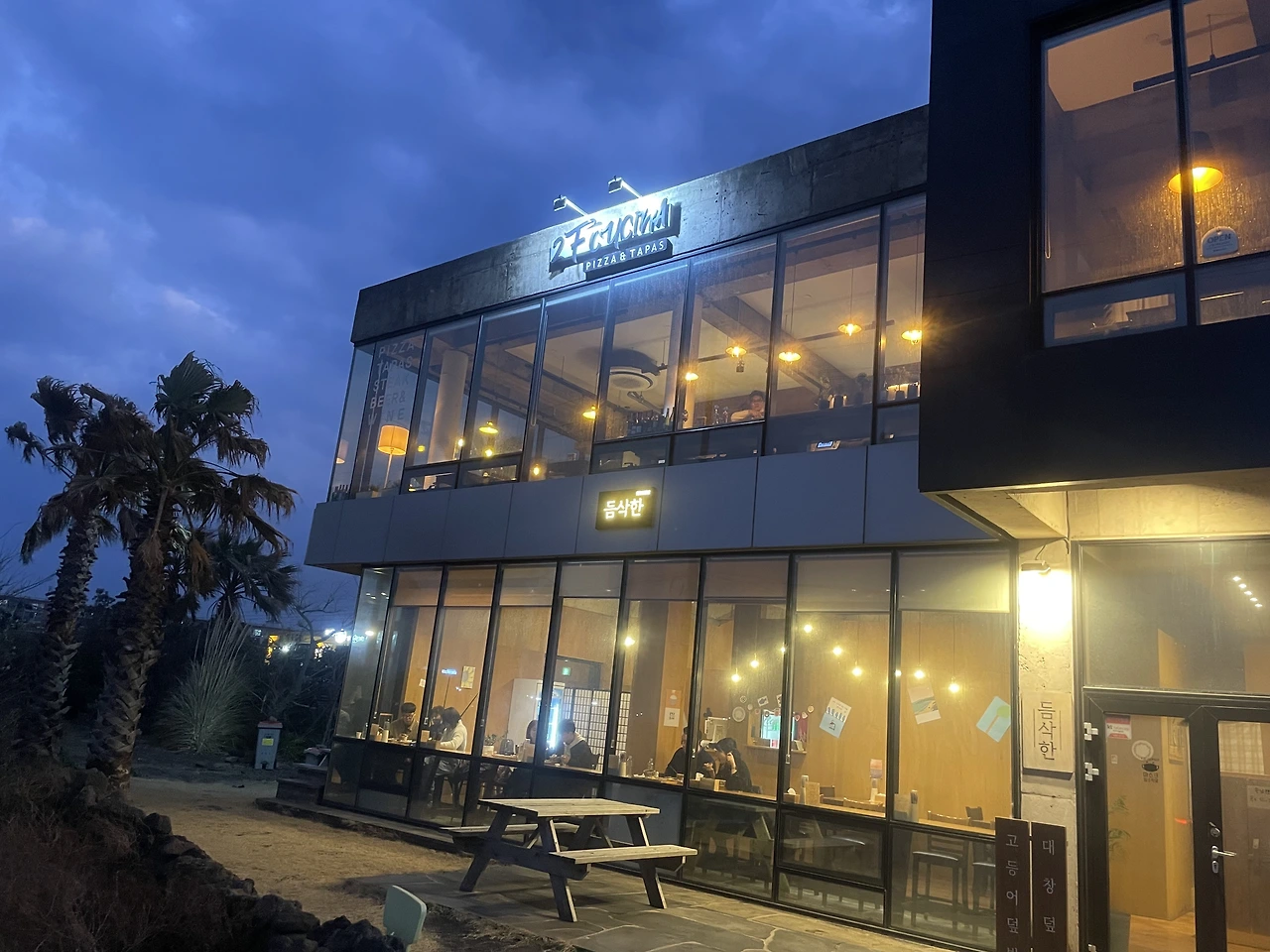 이 역시 여행을 하다보면 흔하게 겪는 일이지만, 우리는 제주도 와서 두번째로 맞는 우리끼리의 저녁식사이기 때문에, 조금 마음이 급해졌다. 아직 한달살이 첫주도 지나지 않은 여행자들의 조급함에, 제주도의, 그 해가 저물면 갈만한 식당이 웬만하면 마감을 하고 영업을 종료해 방문이 어렵게 되었다는 문제까지 더해졌다. 다급하게 주변 식당을 찾았고, 그래서 협재에서 한림으로 옮겨와 평점을 보고 식당을 정했다. 이에프 쿠치나. 쿠치나는 식당인데 이에프는 뭔 뜻이지? 하고 왔는데, 아. 2층이라고.