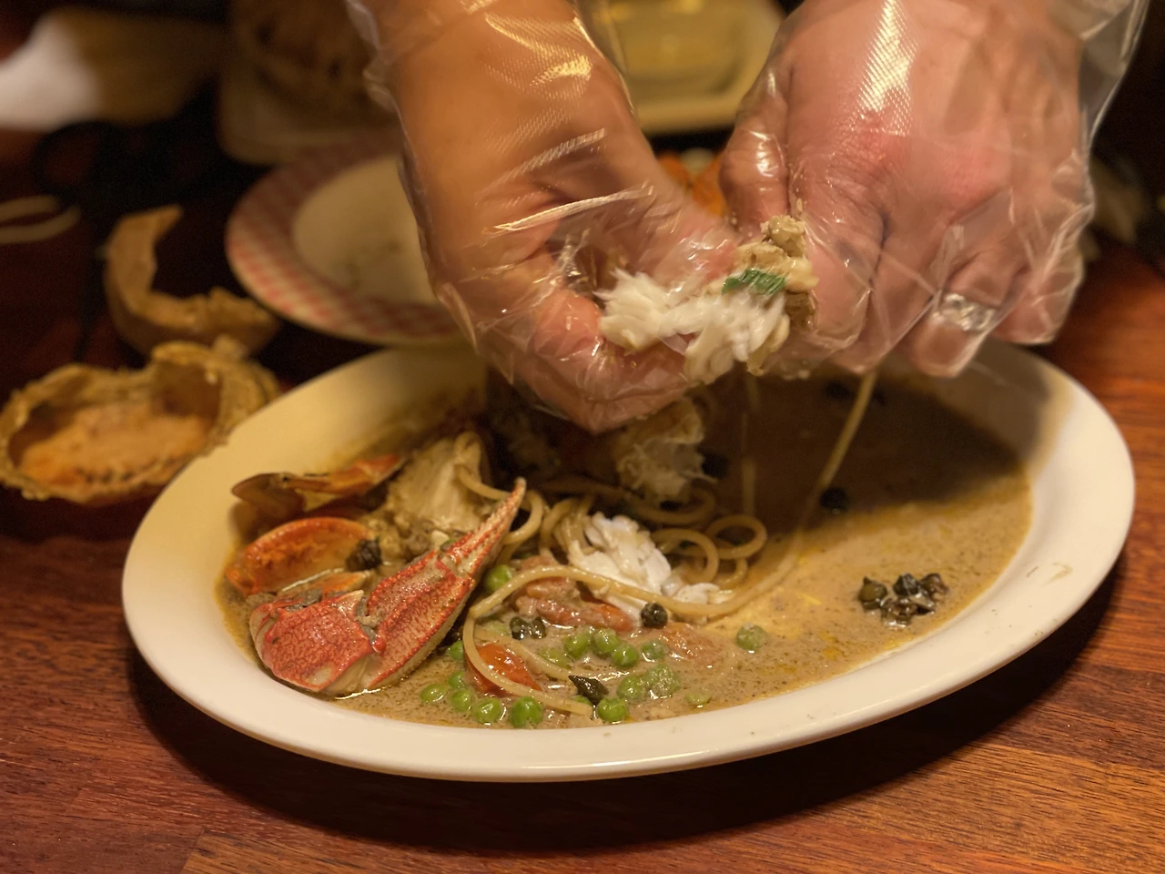 그런데 이 황게파스타, 22000원짜리가 상당히...아니...상당히가 아니라 굉장한 수준이다. 황게를 먹어본 건 처음인데 우선 사이즈가 꽃게로 쳐도 키로에 5만원은 나갈 사이즈로 꽤 큰놈이 나왔다. 게의 내장을 활용한 짭쪼름한 소스에, 어...근데, 살이 안발라져 있는데? 게 살은 직접 발라먹는 구성.