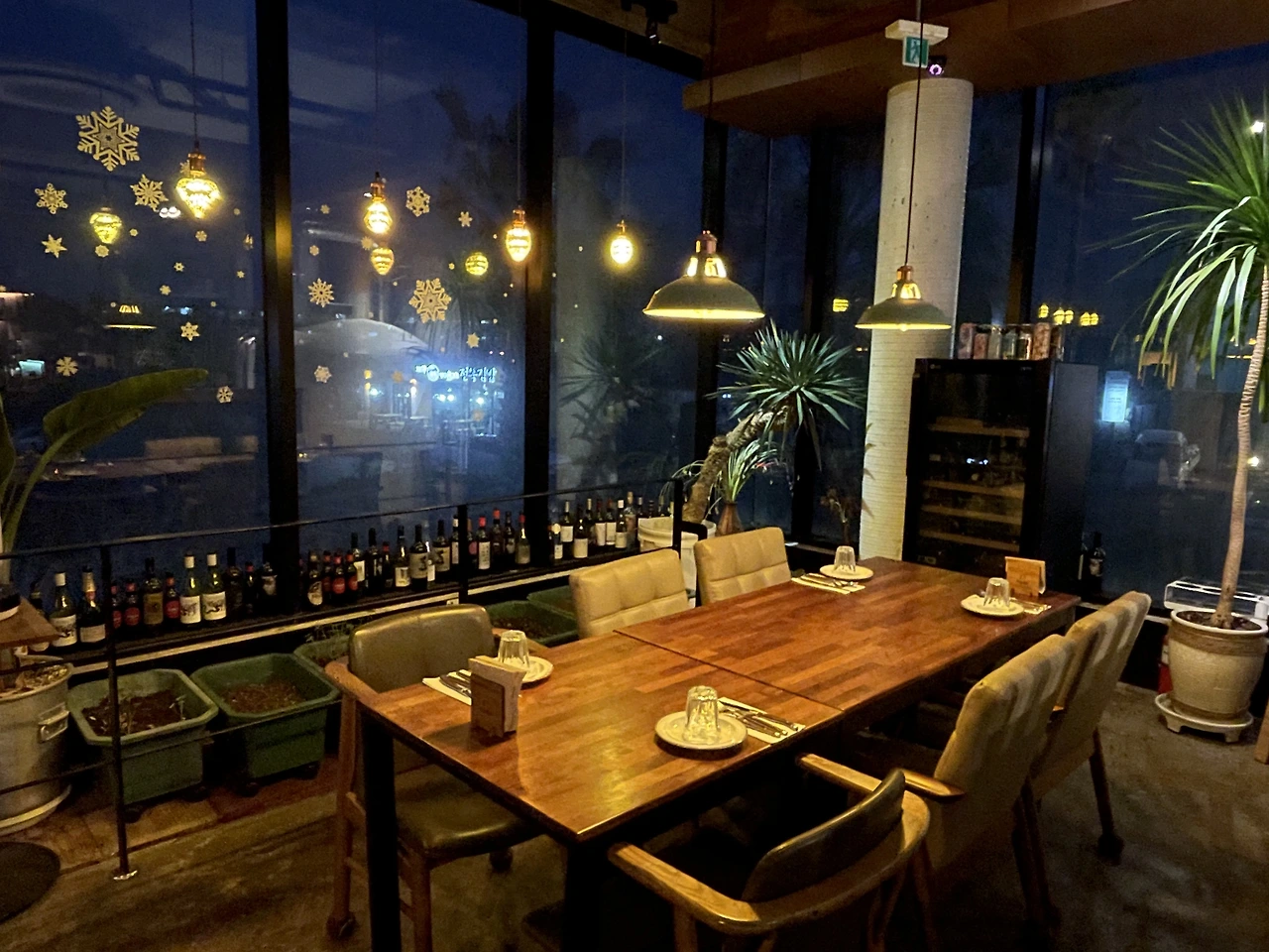 우리가 식당을 찾은 시간은 7시를 훨씬 넘긴 시간이었다. 원래는 1층의 식당을 가려고 했는데, 거긴 마감시간이 임박해서 주문을 받지 않을 것이라 생각해 2층의 레스토랑을 선택했다. 그런데 식당에 들어와보니 제주도 식당들이 해가 저물면 이내 문을 닫는 이유를 알 것 같다. 사람이 없다. 우리들 뿐. 하긴, 저녁엔 다들 숙소로 들어가거나 외식을 해도 고기를 먹겠지.