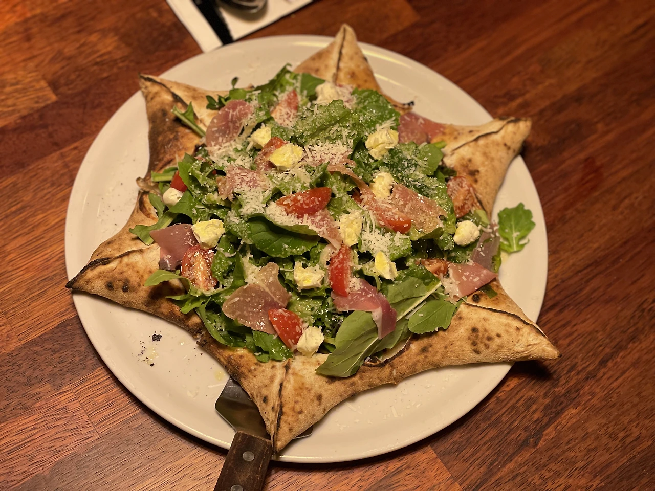 스텔라토, 다시 말해 별모양 피자는 이 식당의 대표메뉴인데 가격이 좀 나간다. 2만8천원. 어쩐지, 메뉴판을 대강 본 나는 마르게리따를 시키자고 했는데 아내가 날 순간 샐쭉하게 바라보더라니. 내가 비싼 메뉴를 피하려고 했다고 오해라도 한 모양이다. 맛은, 한남동 수준의 가격임을 고려해도 썩 나쁘지 않다. 루꼴라와 하몽, 치즈까지 알차다. 도우도 잘 구워져있고 양도 제법 많다. 이걸 낮에 왔으면 오션뷰랑 즐겼단 말이지.