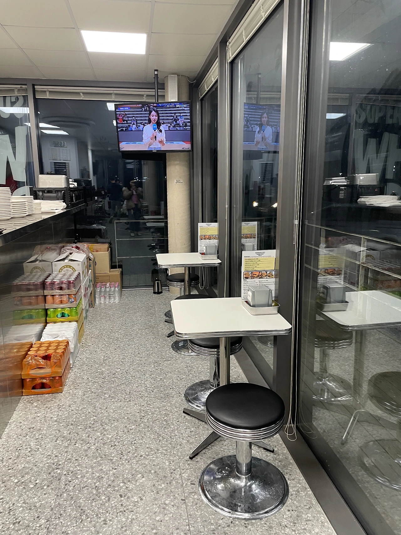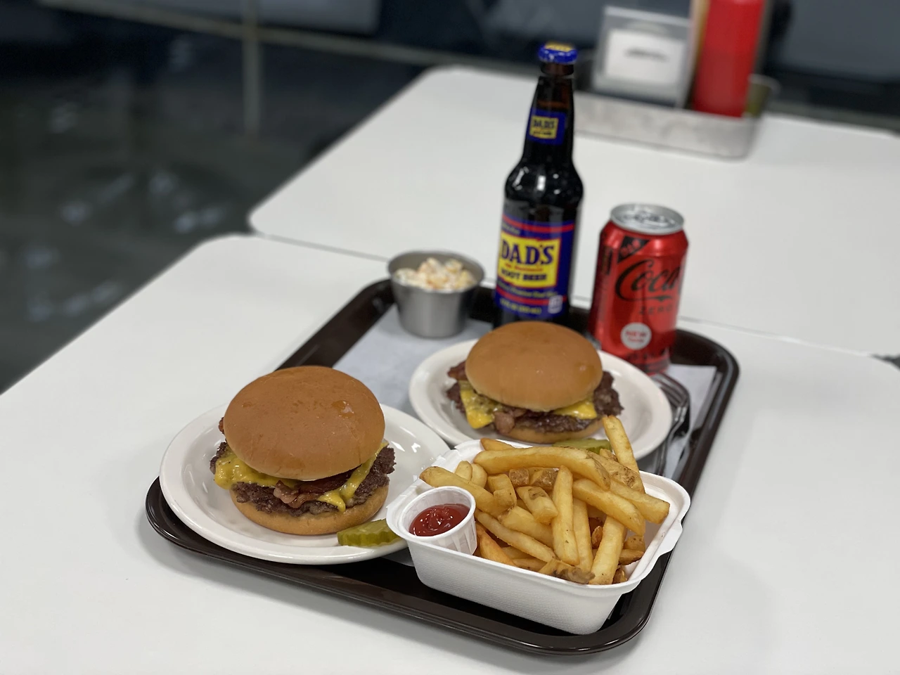 가게 안은 정석적인 햄버거집 인테리어다. 애초에 가게 위치가 번화가와는 멀리 떨어진 곳이라서 임대료가 많이 발생할 것 같지도 않다. 길가에 덩그러니 앉아있는 가게에 이런 모던한 인테리어라니, 외관에서 보여지는 소품같은 느낌에 비해 말끔하다. 그리고 큼지막한 그릴과 튀김기가 모두 오픈키친으로 현관에서 들어오자마자 볼 수 있어 신뢰도가 높고 볼거리가 제법 될 것 같다.