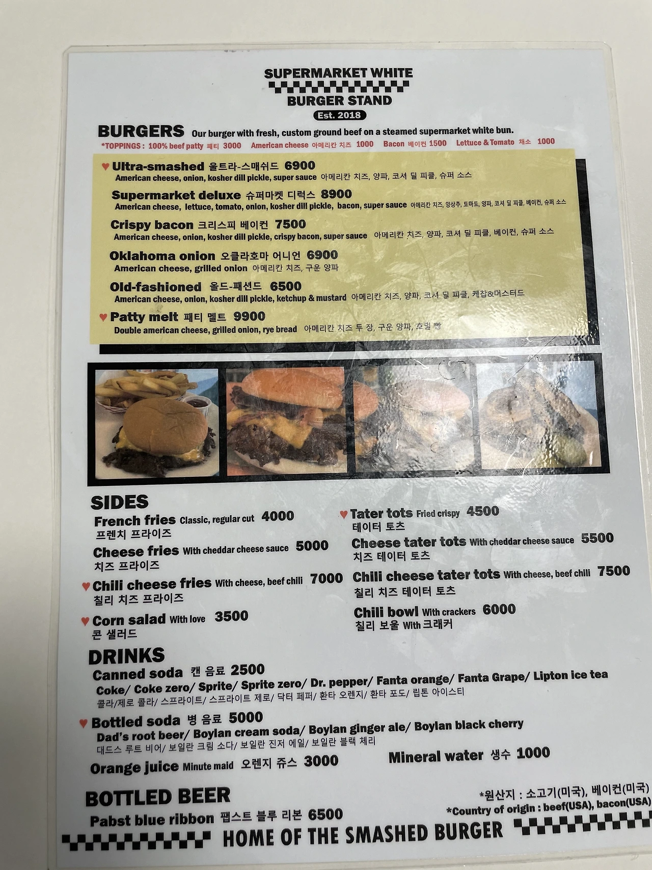 한 5분 넘게 사장님의 햄버거 사랑을 잘 들어보며 이 햄버거의 가치를 더 잘 알 수 있었다. 우선 10개 이상 되는 햄버거 가게들과 함께 전체 쇠고기 물량을 주문해서 돌리니까 그만큼 단가가 낮아질 수 있었다는 점. 아하, 가장 큰 궁금증이 해결됐다. 그리고 버거스탠드의 이 스매시드버거가 다른 햄버거와는 구분되는 하나의 "장르"인 점. 그리고 우리가 먹어본 몇군데의 햄버거집에 대한 이야기까지.