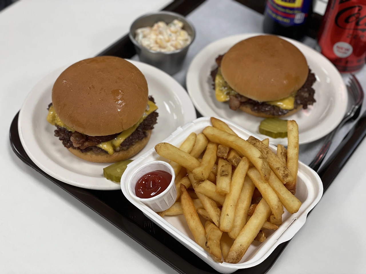 그렇게 잠시 뒤에 서빙된 햄버거는 기대 이상. 이게 7500원이라고? 생각이 드는 퀄리티를 보여준다. 스매시드버거라는, 패티를 호떡처럼 누름기로 꾹꾹 눌러 마이야르를 제대로 일으킨 패티는 짭짤한 맛과 바삭한 식감이 제대로 뿜어져나온다. 가볍고 부드러운 번은 마치 화이트캐슬버거처럼 밀도가 낮아 먹기에 부담이없었고, 두장 햄버거에 모두 들어간 크리스피베이컨 역시, 훌륭해.