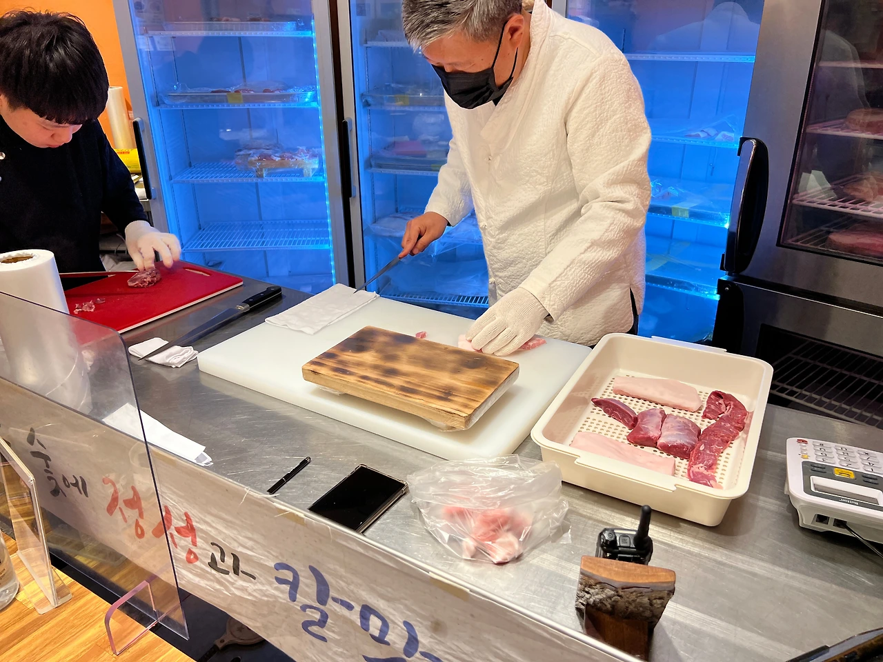 가도 가도 또 갈 곳이 생긴다는 것은, 이번엔 같은 고기를 자리만 바꾸어 먹어 보았는데도 새롭게 느껴지는 일이 되기도 한다. 서구포의 뽈살집 본점을 이번에 왔다. 두 해 전 첫 한달살이 떄는 한림에 있는 분점에서 먹었더랬는데, 그땐 딱히 맛도 없고 고기에 기름기도 너무 부족한 부위가 있고 하여, 그 친절하고 세련된 서비스에 만족하며 배부르게 먹고 나오면서도 대단히 맛있다고 하긴 어렵다고 생각했는데, 본점에선 이번에 꽤나 만족했다. 젊은 사장님 두분이 손님을 맞는 한림점과 달리 서귀포는 장인정신까지 느껴지는 고기 다듬는 자리가 따로 있다. 서비스는 말할 것도 없이 두곳 다 훌륭.
