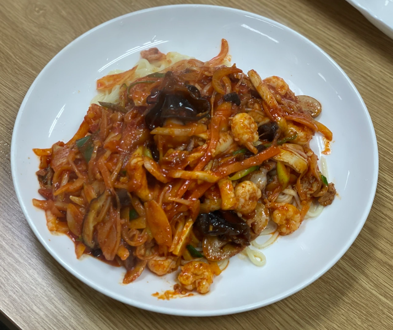 간짬뽕을 빼앗아먹어보니 생각했던 신간짬뽕과는 역시 확 다르다. 매운 울면이랄까, 소스에 자작하게 버부려서 먹는데 면에 물기가 살아있어, 볶음짬뽕으로 먹기보단 말 그대로 '마른' 짬뽕이다. 자극적이지 않고 맵지도 않다. 고추기름의 알싸함만 느껴지는 부드러운 맛에, 역시 호화로운 고명이다. 냉동으로 생각되지만 굳이 굴까지 넣어서 맛을 꽉 채워주시는 이 달인의 고집.