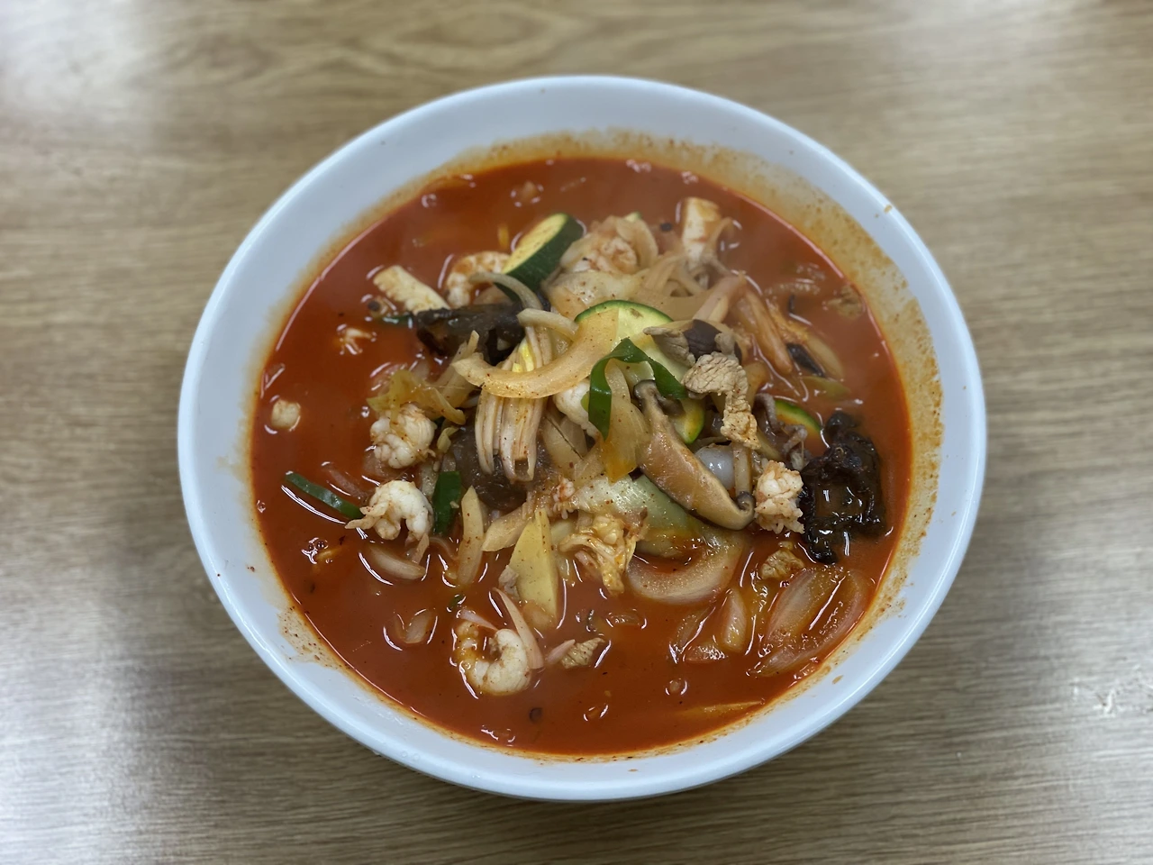 국물의 밸런스가 놀랍다. 짜지 않고 바다향도 과하지 않으면서, 육수의 감칠맛이 딱 적절한 균형을 이루고 있다. 자극적이지 않은 얼큰한 국물이 채소와 고기, 해물에서 우러나와 잘 어우러진다. 안그래도 일단 접시를 받아보고는, 애호박이며 목이버섯이며 표고버섯이 죽순이 올라간 것이 그 수준을 알만하다. 과하지 않고 부족함도 전혀 없는 황금비의 짬뽕맛.