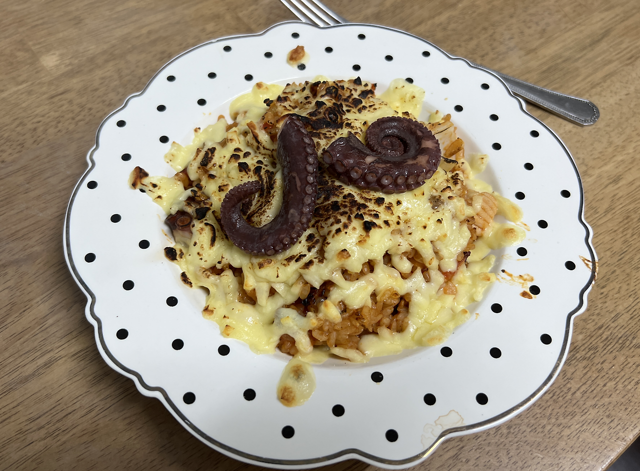 다만 오늘은 토마토 소스 말고는 풍미를 낼만한 재료가 없다. 원래는 야채와 함께 베이컨이든 뭐든 드글드글 볶아서 좀 감칠맛을 내야 하는데 문어는 가볍게 데우는 것 이상의 재조리를 할 수는 없다. 연체동물의 무른 육질은 바로 질겨지고, 맛없어질 테니. 그리고 시간도 없다. 대신, 나름 정성껏 바깥양반의 식기엔 치즈까지 듬뿍 올려 오븐에 구운 뒤 토치로 피니시했다.