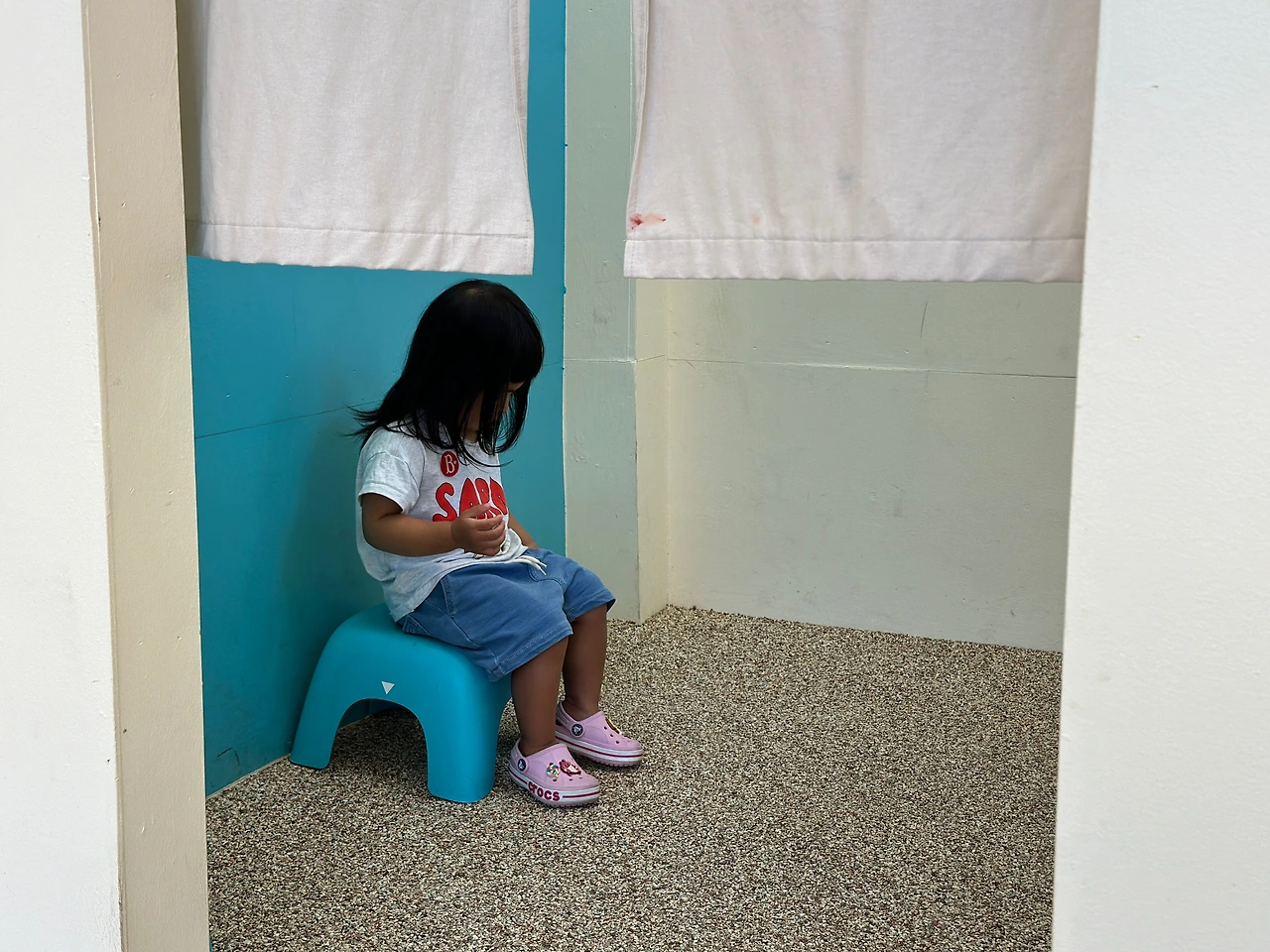 아이는 열두시부터 한시까지, 조금 이른 점심을 먹고는 낮잠을 자는 규칙적인 일과를 지켜오고 있다. 이 일과를 지켜주어야만 우리도 편하고 어린이집 선생님도 편하고 아이에게도 좋다. 아이가 조금 더 어릴 때는 차에서도 어찌 어찌 자 주었기 때문에 그런 낮잠을 무시하고 아이를 끌고 다녔지만 이제는 그리 되지 않는다. 졸리면 전력으로 자기를 재워달라며 "코-"하며 고갯짓을 한다. 재워주지 않으면 왜 재워주지 않는지, 왜 자기를 괴롭게 하는지 화를 낸다. 이제는 알만큼 알고 알아들을만큼 알아들을 시기가 되었으니, 당장 아이를 눕혀주어야 한다. 최소한 카시트에는 앉혀주어야 한다. 카시트에선 그나마 잔다. 그런데 오늘은 글쎄, 먼 길 오는 동안 피곤하지도 않았는지 숙소에 와서는 계단만 신나게 오르내린다.