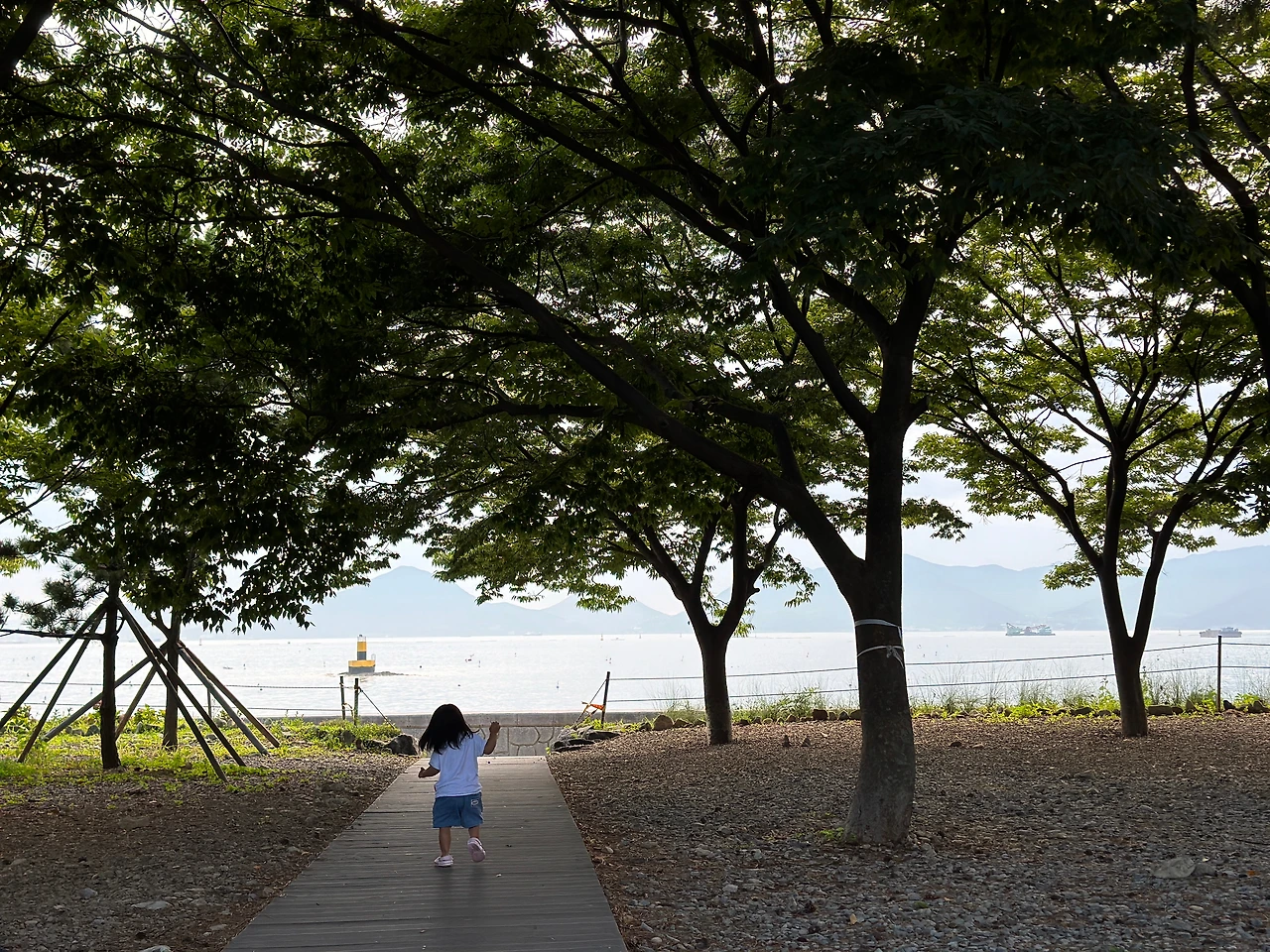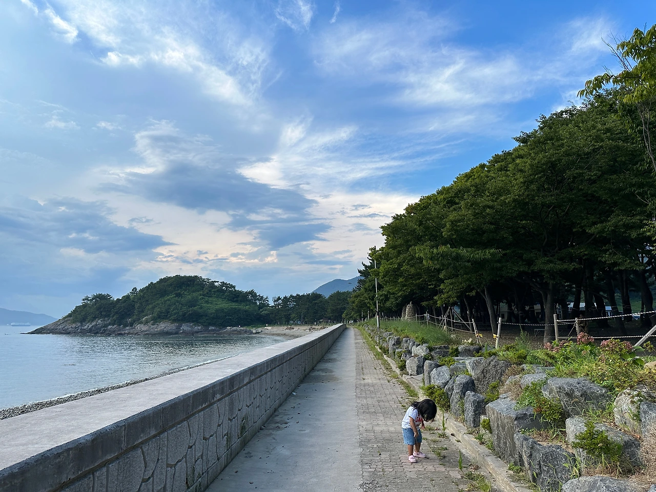 다만 남해의 아쉬운 점은, 이토록 바다가 망망히 넓은데, 해수욕장이 많지는 않다. 아니 뭐, 서해처럼 백사장이 좌아악 깔려있는 곳이 삼면 바다에 그리 흔하지 않긴 하다. 우리가 숙소를 조금 애매한 위치에 잡은 걸 탓해야할 문제겠지. 그래서 저렴한 것이기도 하겠다. 가까운 해수욕장까지 차로 10여분. 그리 어려운 길도 아니지만, 전반적으로 작은 포구가 발달했지 해수욕장이 많지 않다. 그나마 가까운 몽돌해안이 어촌의 비릿한 내음이 진동해, 아이가 벌써 알고 그리 좋아하지 않았다. 별 수 없지. 시간을 내 멀리 가야겠다.
