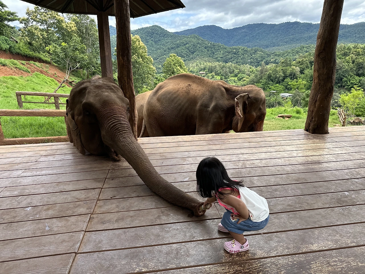 바깥양반이 이미 알아본 바, 저가형 택시를 타고 왕복 대기를 하는 것이 최선이며 먼저 택시 기사가 흥정을 제안한다고 들어 우리는 1000바트에서 조금 더 깎았다. 950바트를 주고 다녀오기로 했다. 이정도면 치앙마이 관광 일정으로는 조금 크게 쓴 것이긴 하다. 그러나 아이가 직접 코끼리를 만져보고 먹이도 줄 수 있는 곳이 있다는데, 이건 못참지. 제주도 코끼리 공연장보단 훨씬 괜찮다.