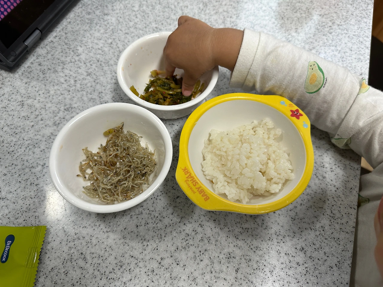 더불이 이녀석은 요즘 들어 아빠가 상에 올린 열무김치를 빼앗어먹기 시작하더니만, 이제는 숫제 김치 내어노으라며 서툰 발음으로 "김치- 김치-" 한다. 그런고로 우리 따님께서는 남해 멸치와 더불어 할머니의 열무김치로 매 끼니마다 호식. 아이 그릇에 넉넉히 담아준 밥을 성심 성의껏 열심히 먹어준다.