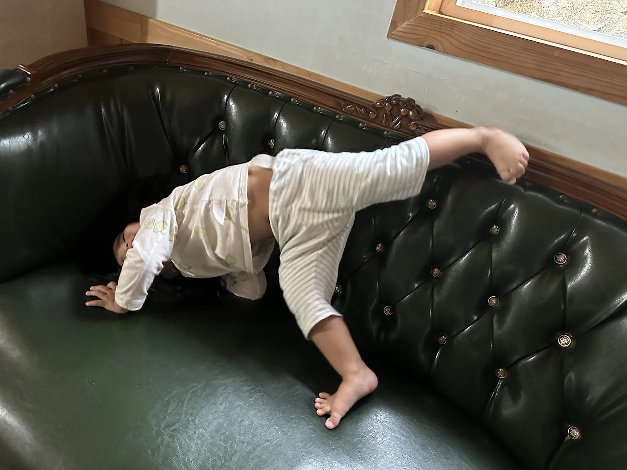얼마나 놀랐을까 하며 아이를 바로 끌어안았는데, 뺨엔 찰과상이 생겨있고 놀란듯 크게 운다. 안아주고 달래주니 울면서도 대답을 똑부러지게 하기에 가슴을 쓸어내린다. 목이라도 부러졌으면, 머리라도 깨졌으면. 방금 전까지 물구나무를 서며 개구지게 놀던 아이를 가슴에 묻을 뻔 했다. 복충 숙소를 빌려서는 3일간 매 번 계단에 따라다녔지만, 아이가 하루에 수십번을 오르내리다보니 우리가 모두 신경을 쓰지 못한 틈이 만들어져버린 것이다. 다시는 그러지 말자고 아내와 같이 다짐을 하고선, 겨우 겨우 아이를 달래 잠을 재웠다. 정말이지 놀랍게도, 아이는 잠시 계단을 겁내더니, 몇시간 지나자 아빠의 조심하라는 당부에 "응!" 하며 다시 제 발과 제 손으로 계단을 오르고, 내린다.