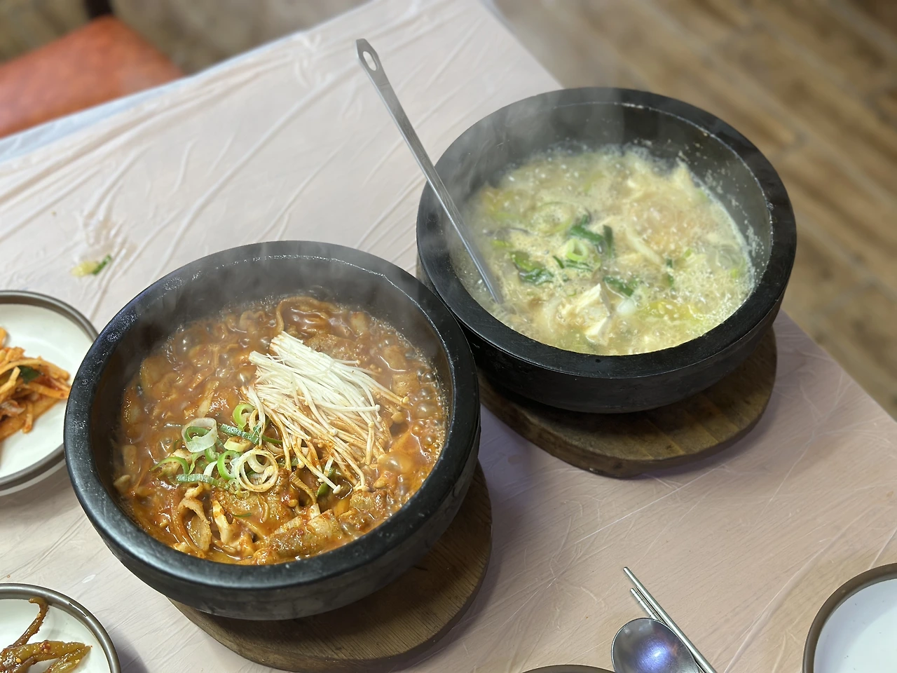 그 대신 찾은 밥집은, 음. 만족스러웠다. 된장찌개와 두루치기가 돌솥에 끓여져나온다. 깔끔한 맛, 잘 볶아진 기름 내음. 그리고 깔끔한 반찬에 너그러운 친절까지. 배가 고프던 아이는 김가루 올려서 내와진 밥을 모두 먹어치웠다. 가려던 곳을 못갔지만, 대신 방문한 곳에서도 아쉽지 않은 식사였다.