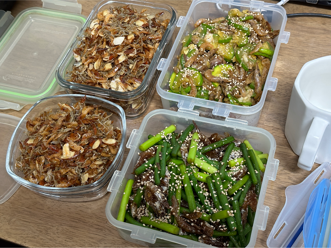 새우를 하나 집어먹어본다. 야- 감칠맛. 이게 건새우지. 보리새우를 사오길 잘했다. 맛도 좋고 몸에도 좋은 게 건새우인데, 그 식감이나 향을 막 엄청 좋아하진 않는 편이라, 바깥양반이 좋아함에도 새우볶음을 해주지 않았다. 남해 여행 중 들른 식당에서, 바깥양반이 마늘쫑과 새우볶음을 맛나게 먹길래, 아 내가 너무 무관심했구나, 반성하며, 멸치를 산 김에 보리새우도 사, 반찬을 만들기로 한 게 오늘의 사정.