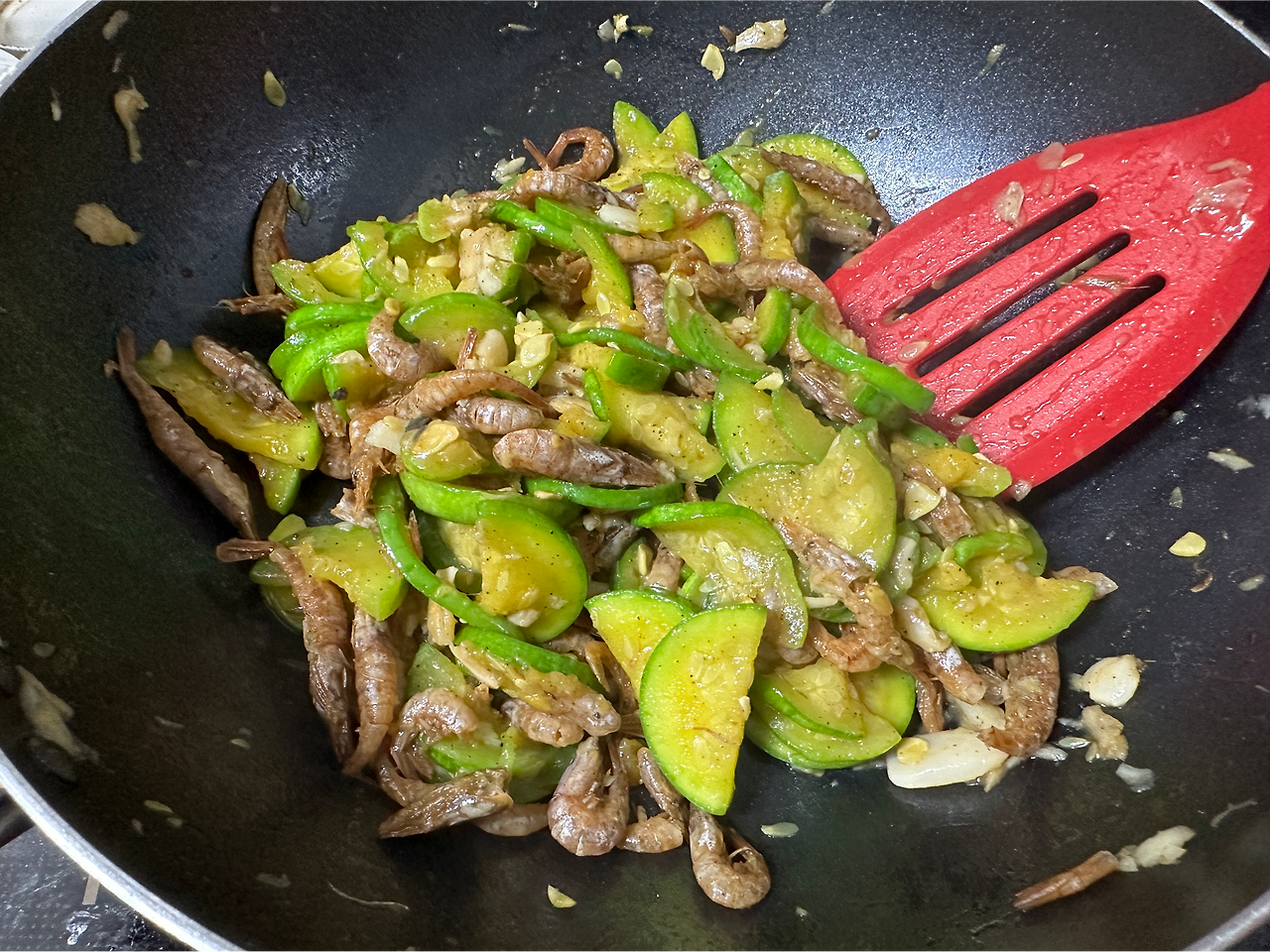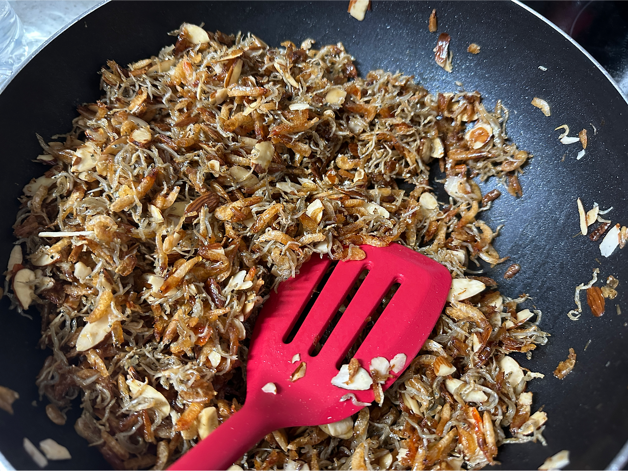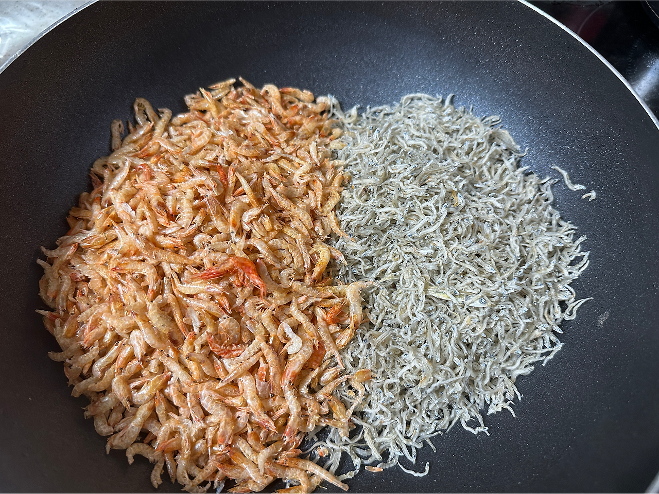 건어물이라 아무래도 이물질이 있을 수 있다. 멸치볶음을 할 때 손이 많이 가게 되는 일이다. 그래서 조금, 바삭해지도록 볶으며 이물질을 걸러내게 되지만, 맛은 좀 아쉬워지겠지. 새우와 멸치를 볶으며 하나 둘 입으로 가져가본다. 짜지 않고 달달한 게, 감칠맛.