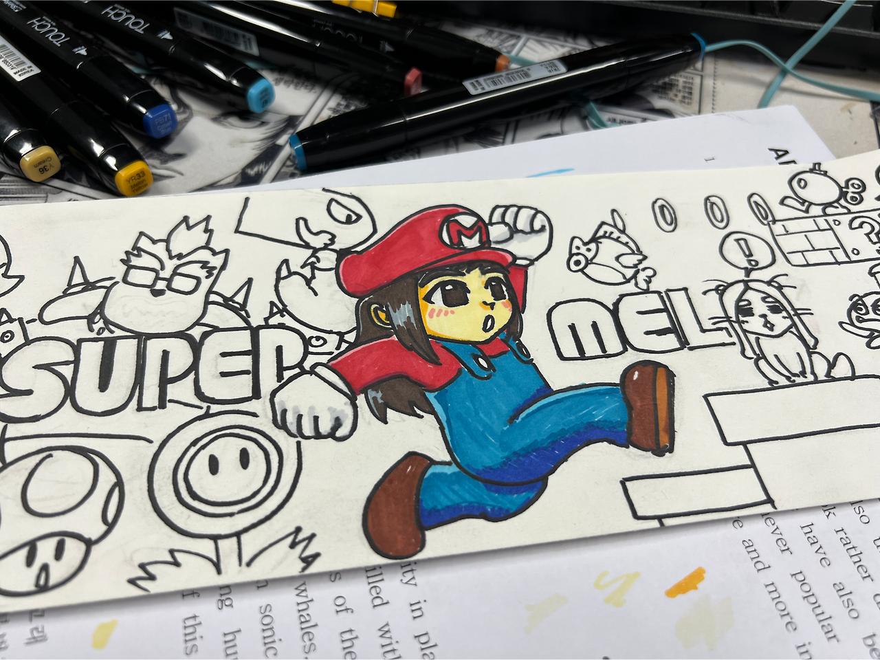 써보지 못한 마커세트까지 총동원해 방과후에 하루 날을 잡아 스케치. 다른 날에 또 하루 날을 잡아 채색까지.