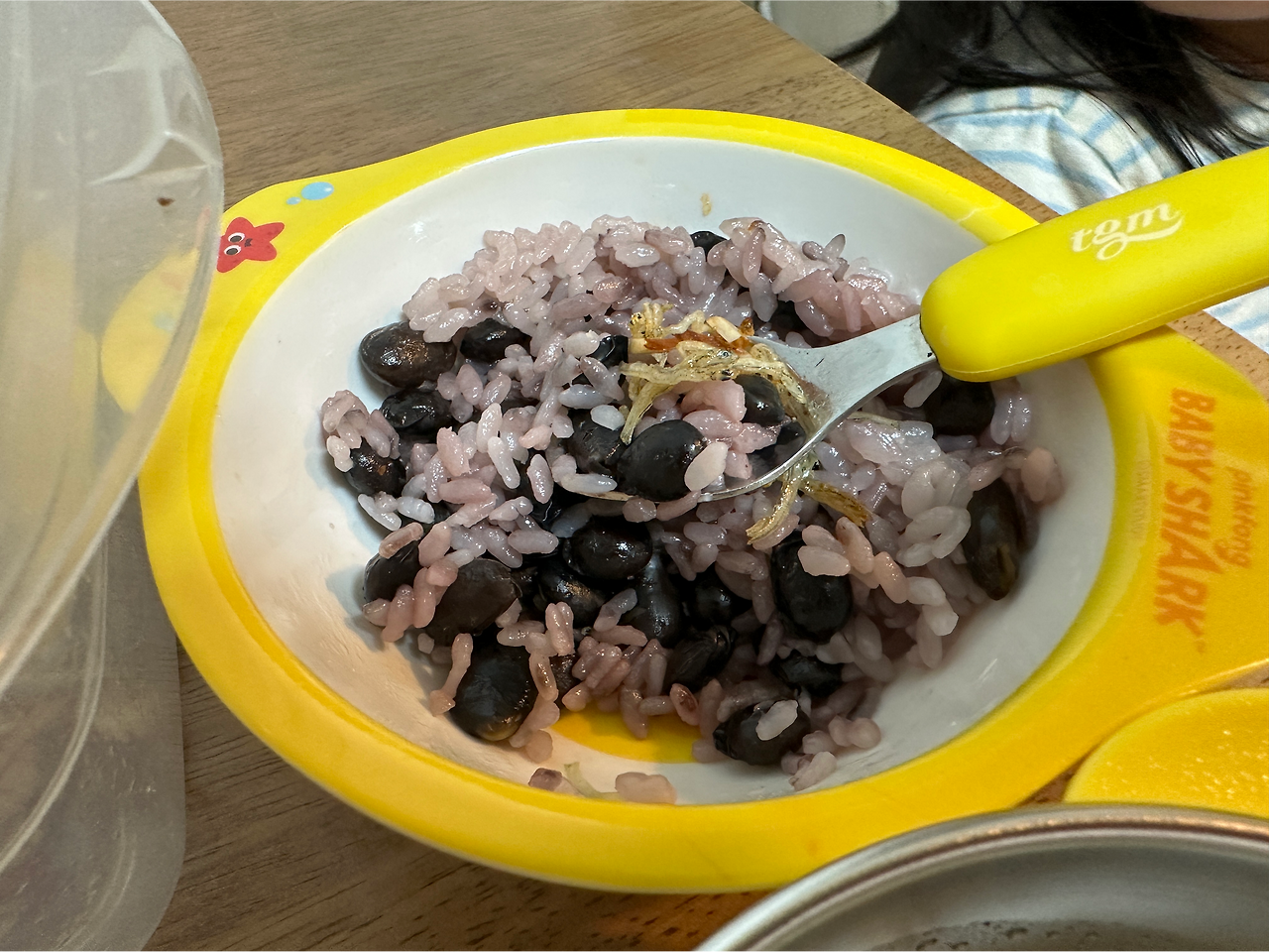 그것은 조금, 예쁘게 얄미운 식습관이다. 이 콩이, 밥에 알알이 박혀들어가있는 맛이 얼마나 구수하고 달콤한 것이냐. 그런데 네가 코옹 하며 손가락으로 밥을 콕 찔러, 그것만 입에 담겠다 하니, 아빠는 콩을 듬뿍 넣어주지 않을 수 없다. 그러니 자연, 우리가 먹을 콩의 양은 줄어들 밖에. 그러다가 자기 밥그릇에 있는 밥은 안먹고, 갑자기 내게 달려와 무릎에 앉더니만은, 밥을 먹겠냐 물으니 아빠의 밥그릇에 있는 놈을 가르키고는 또, 코옹.
