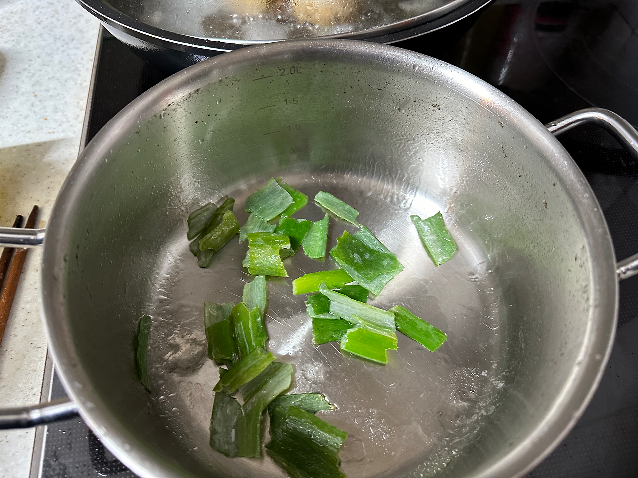 그래도 나는 그 와중에 어떻게서든 뭐든 더 하고야 마는 성격이다. 파 기름을 조금이라도 내려고 굳이 또 따로 파를 볶는다. 이렇게 하면 라면의 평범함을 조금이라도 줄이고 깊은 맛을 낼 수 있으니. 그리고 국물은 일부러 넉넉하게 했다. 참치액과 가쓰오부시 국물이 있으면 물을 추가해도 싱겁지 않고 오히려 원래의 그 우동 맛을 잘 살릴 수 있다.
