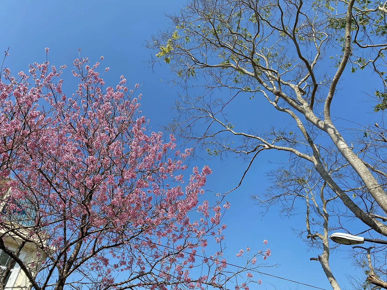 보랏빛 꽃이 만발한 체리란에서