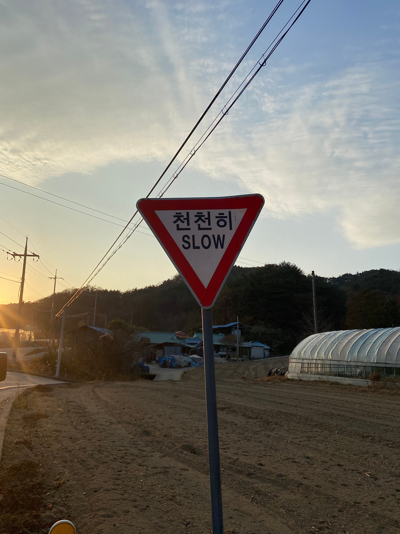 시골 도로에 ‘천천히 SLOW’라고 쓰여있는 표지판이 우뚝 서있다. 우리도 이 표지판처럼 조금은 천천히, 느리게 살아보면 어떨까? 여유롭게 주위를 둘러보며 자연이 바뀌어 가는 것도 느끼면서, 혼자 사는 삶이 아니라 서로 외로움과 행복을 나누고 베풀면서, 욕심 없이 필요한 것만 소유하고 만족하며 단순하게 사는 마을 사람들처럼 살아가면 좋겠다.