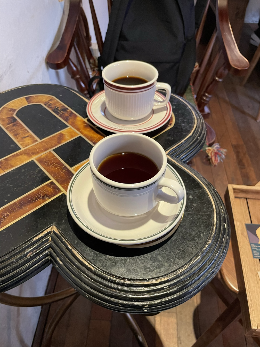 해로커피는 가게에서 직접 로스팅한 원두를 사용한다. 안쪽 공간에 로스팅 기계가 있다고 하는데 실제로 본 적은 없다. 메뉴판에 올라와 있는 메뉴는 아메리카노, 라테, 플랫화이트, 아인슈페너가 대표적인 에스프레소 음료고 그 외의 베리에이션 음료는 다양하게 취급하지 않는다. 그 대신 필터 커피로 마실 수 있는 원두 종류가 다양하다. 작은 배치로 직접 로스팅을 했다고 하니 꽤 믿음직스럽다. 이곳은 총 6가지의 원두를 제공하는데 나는 동행한 사람과 함께 성북아리랑과 브라질을 한 잔씩 주문했다. 성북아리랑은 다크초콜릿 향미가 나는 원두로 진하고 쌉싸름한 맛이 일품이었다. 브라질은 부드럽고 고소한 맛이 나며 끝맛이 라이트 한 것이 마시기 쉽고 보리차와 닮은 맛이 났다.