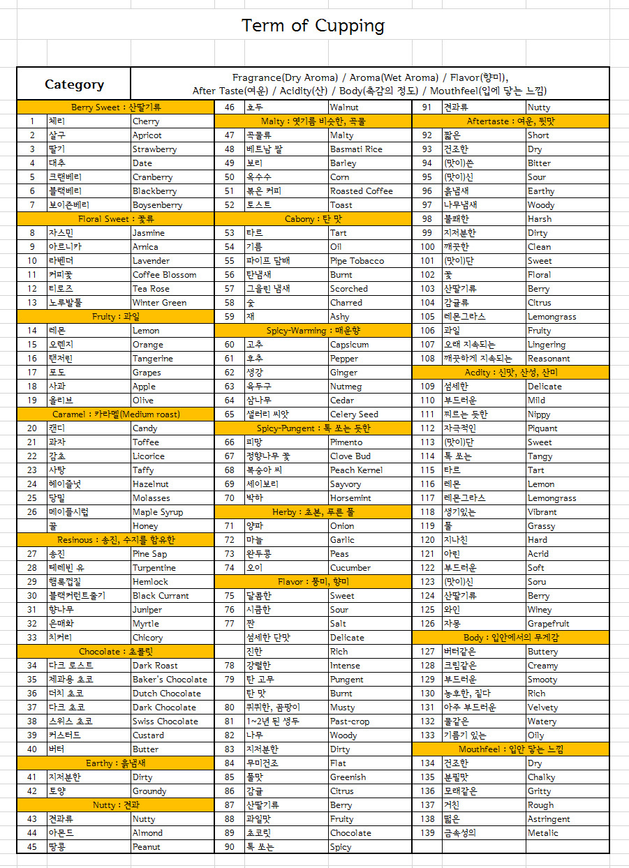 나는 친구에게 커피의 향미를 평가할 때 사용하는 용어 리스트를 인쇄해 주면서 어차피 커피 감정을 해야 할 상황이니 ‘과일 같은 신맛이 어떻고, 바디감은 어떻고, 후미는 어떻고’ 하는 구체적인 표현 방법을 공부하라고 했다. 그러면서 친구 또한 커피의 마력에 빠져 또 다른 누군가를 괴롭히게(?) 될 것이라는 예언을 했다. 친구는 절대 그런 일은 없을 것이라고 했지만 나는 커피가 얼마나 무서운 녀석인지 머지않아 알게 될 것이라며 음흉한 미소를 지었다.