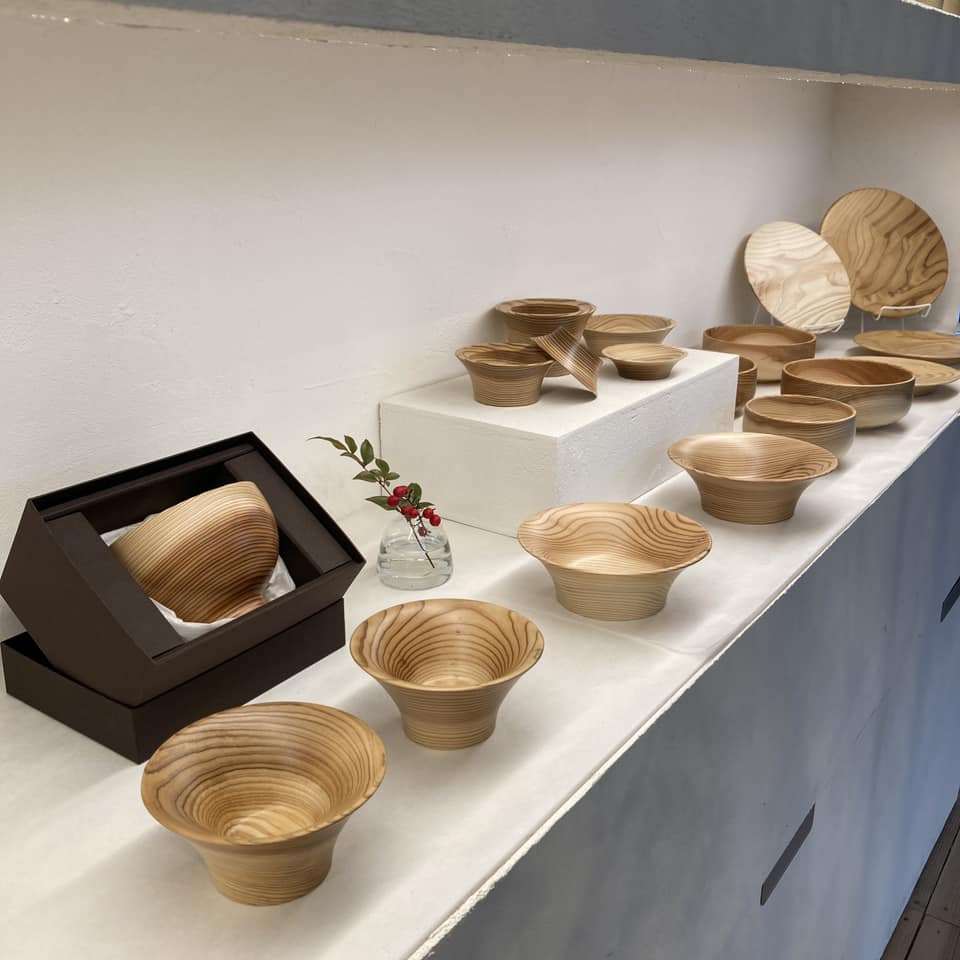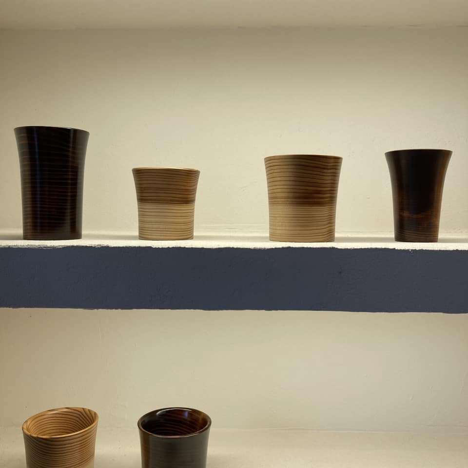 히로세 씨는 ‘시즈쿠(물방울)’라는 로컬 브랜드를 내세워 가미야마의 삼나무 생태계를 살려 수자원을 보호할 방법이 없을지 고민했고 삼나무로 컵이나 식기를 만들기 시작했다. 처음에는 마을의 목공 장인들에게 “누가 삼나무로 컵을 만들어! 게다가 나이테 방향을 거스르는 그런 방식으로 만든다고? 너 바보냐?”라는 소리를 들었다고 한다. 하지만 여기서 포기할 히로세 씨가 아니었다. 대기업을 상대로 경쟁 피티를 하면서 다져진 멘탈갑 아니던가. 결국 기존의 틀(상식)을 깨는 방식으로 전혀 새로운 일본 전통 디자인을 가미한 제품을 완성할 수 있었다.
