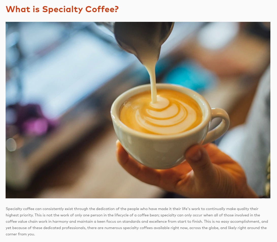 그렇다면, SCA에서 알리고자 하는 ‘스페셜티 커피’란 무엇일까요? 이 단어가 무슨 의미가 있기에 단체까지 만들어졌는지, 그냥 말 그대로 특별한 커피가 아닌 건지 커피에 큰 관심을 가진 분들에게는 조금 지루한 부분이 될 수 있겠지만 확인해보고자 합니다.