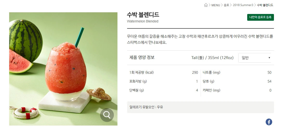 수박 블렌디드엔 또 다른 게 섞여 있다. 패션프루츠다. 백향과라고도 불리는 이 과일은 백가지 향이 난다고 한다. 그만큼 향과 맛이 강렬하다고 하는데, 먹어 본 적은 없다. 이 패션프루츠는 씨 토핑으로 소량 들어가는데 스타벅스의 파트너에 따르면 새콤한 맛을 담당하고 있다고 한다.