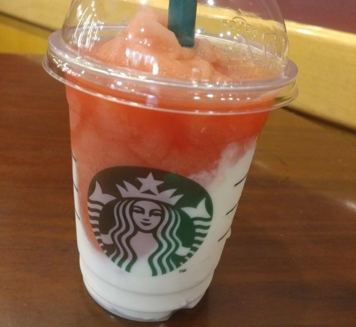 스타벅스에서는 지난번 아보카도에 이어서 이번에는 수박을 담아왔다. 이번에도 눈에 띄는 건 씨다. 아보카도의 거대한 씨는 아니지만 작고 까만 씨 덕분에 더욱 비주얼이 수박처럼 보인다. 아보카도의 비주얼을 담아냈던 것처럼 수박을 그대로 담아냈다.