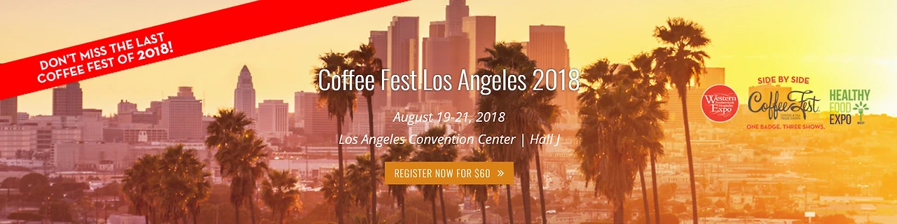 Coffee Fest Los Angeles 2018은 8월 19일부터 21일간 진행될 예정입니다. 글이 발행되는 시점부터 얼마 남지 않았기 때문에 당장 참석하는 것은 어려울 듯합니다. 하지만 2019년 3월에는 뉴욕에서 5월에는 인디애나폴리스에서 계속해서 개최할 예정이라고 하니 참고하시면 좋겠네요.