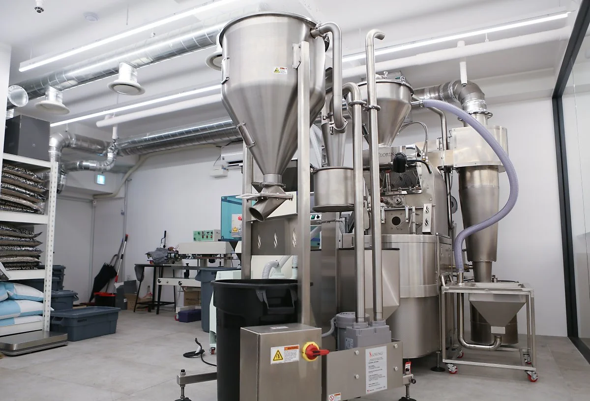 카페 뒤편엔 로스팅을 위한 공간이 있었습니다. 로스팅 공간을 투명한 유리로 배치해 언제나 직접 로스팅하는 모습도 보실 수 있습니다. 이러한 인테리어는 단순히 로스터리 카페라는 어필뿐이 아니었습니다. 캐나다 국가대표 출신의 김현수 로스터는 이곳에서 로스팅을 하면서 고객들의 반응을 보고 더 적합한 로스팅으로 커피를 만든다고 합니다.