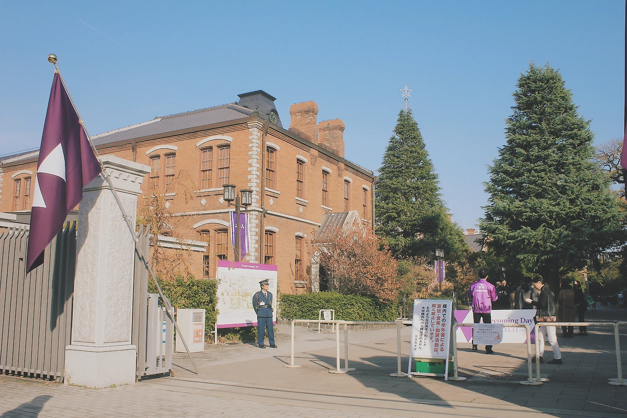 대학 외관을 둘러싼 벽이 일본 특유의 양식으로 되어 있어 대학 내부 역시 일본풍이 짙게 배어 있으리라 짐작했으나, 막상 대학 안으로 들어오자 붉은 벽돌들로 지어진 기독교 혹은 천주교에 건물 양식에 영향을 받은 듯한 건물들이 자리 잡고 있어 굉장히 독특한 느낌을 풍겼다. 세련된 느낌의 교토대학교와는 다르게 고풍스럽다는 생각이 절로 들었다.