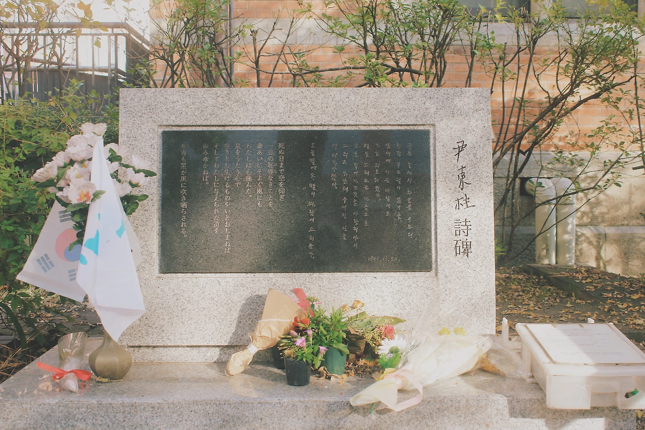 우리나라의 근대 시 문학에 있어 가장 중요한 인물이라고 할 수 있는 윤동주 시인과 정지용 시인. 교토에는 그들이 다녔던 '도시샤 대학'이 있다. 그리고 도시샤 대학 한편에는 도시샤 교우회 코리아 클럽에서 조성한 윤동주 시인과 정지용 시인의 시비가 자리 잡고 있다.
