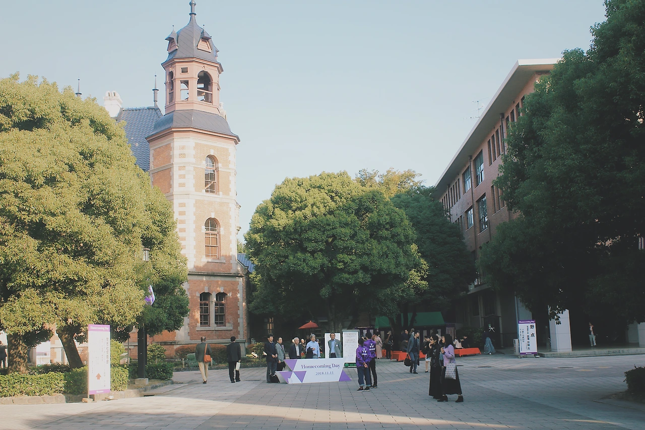 홈 커밍 데이를 맞은 일요일의 도시샤 대학은 학생들과 가족들로 붐볐다. 저마다 학교 한편에 자리 잡고 담소를 나누거나 학생들끼리, 가족끼리 추억을 담은 사진을 남기느라 분주했다.