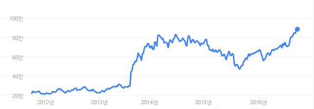 그 결과, 네이버의 수많은 자회사 중 하나에 불과했던 라인은 2016년 7월 미국과 일본에 동시 상장하며 10조원 가량의 시가총액을 형성하며 2016년 세계 최대 Tech IPO 대어로 화려하게 데뷔합니다. 게다가 최근에는 네이버의 자회사에서 개발한 스노우라는 앱 (스냅챗과 유사한 기능의 사진, 동영상 채팅앱) 이 아시아의 젊은 유저들과 여성들에게 인기를 끌면서 제2의 라인이 될지 여부에 귀추가 주목되고 있습니다. 한국에서의 디지털 광고시장 선점, 성공적인 라인의 수익화를 통해 네이버의 이익은 꾸준히 증가하는 추세를 보였고, 이러한 절대가치 (기업의 수익)의 증가와 더불어 스노우앱의 잠재력이 주목받으면서 네이버의 주가는 사상 최고치를 경신하고 있습니다. 네이버는 더 이상 검색 엔진에만 집중하는 인터넷 포털 중 하나가 아닌, 대마불사의 IT공룡이 되었으며 전 세계를 무대로 구글과 같은 미국 IT공룡들과 경쟁하고 있습니다.
