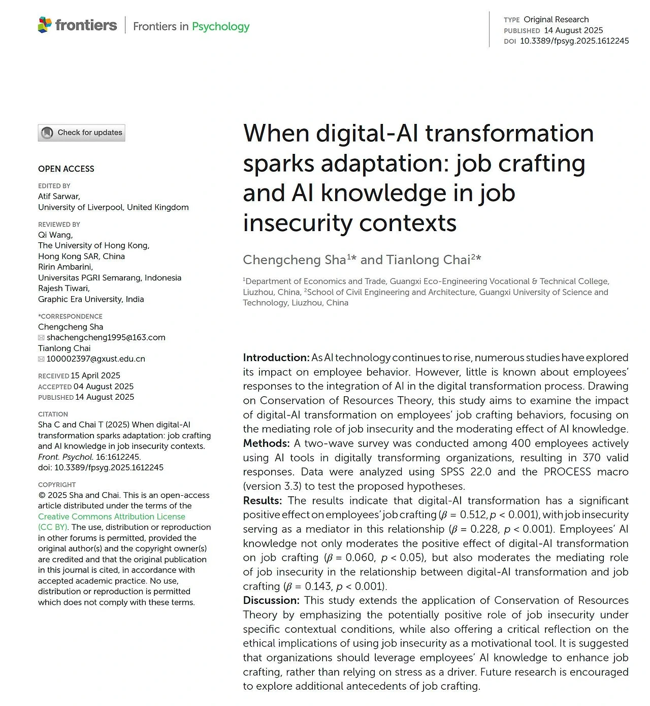 AI를 적용한 조직의 구성원 370명을 분석했더니, AI 전환이 진행될수록 직원들의 잡 크래프팅(스스로 일하는 방식을 바꾸고 새 기술을 익히는 행동)이 나타났습니다.