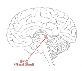 데카르트는 나름대로 이 문제를 설명하기 위해 서로 다른 실체가 소통하는 기관이 우리 몸 안에 있다고 주장했습니다. 그는 뇌 안의 송과선 혹은 송과샘(pineal gland)라고 불리는 부분을 통해서 몸과 마음이 소통한다고 하였는데요, 이 부분은 과학적으로 밝혀진 바가 없습니다. 다만 이후 송과선은 세로토닌의 영향을 받아 멜라토닌이라는 호르몬을 분비하여 우리 몸의 생체 주기를 조절하는 기능을 하는 것으로 밝혀졌습니다.