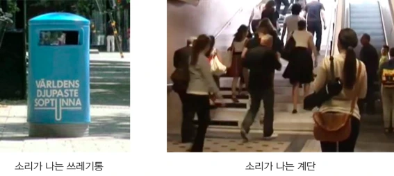 Nudge Marketing을 통해서 좀 더 유연하고 부드러운 방식으로 선택의 자유는 여전히 개인에게 주되 소비자가 상품을 선택하도록 접근시키듯이 네티즌 또한 관련 컨텐츠(contents)를 선택하도록 클릭하도록 할 수 있을 것입니다. 소리가 나는 쓰레기통은 쓰레기를 버리면 더 깊은 곳으로 소리가 나도록 하여 사람들이 쓰레기를 버리게 하며, 소리가 나는 계단은 계단을 지날 때마다 소리가 나게 하여 계단을 사용하게 합니다. 두 사례 모두 넛지마케팅의 사례입니다.