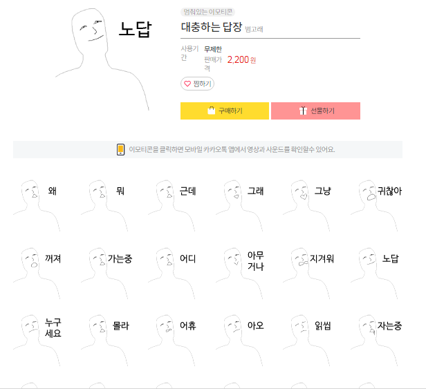 [그림 1] 간단하지만 사람들에게 사랑을 받고 있는 메신저 이모티콘 [1]