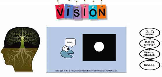 철학에서는 본다는 것에 대한 인식론인 접근 기반을 제공할 것입니다. 지각 심리학에서는 정신 물리학(psychophysics)적인 방법으로 시각 자극에 대한 인간의 반응을 측정할 수도 있을 겁니다. 인지심리학에서는 시각적 처리 모형을 제시할 수도 있겠죠.