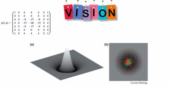 수학은 두말할 나위 없이 많은 기여를 하고 있지만 한 가지 예를 들어보면, 행렬을 이용하여 시각정보처리과정의 도식화를 가능하게 해줍니다. 행렬을 이용하면 컴퓨터를 통해 인간 눈에 있는 신경절 세포(ganglion cell)의 수용장(receptive field)을 모사하여 도식화할 수 있습니다.