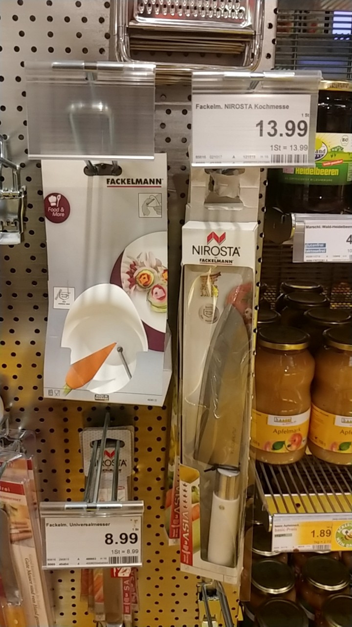 한참 헤매다 주방용품 진열해 놓은 곳을 찾았다. 하지만 그곳엔 고급 브랜드 용품 전시장인 듯 값 비싼 물건들이 황제처럼 자리잡고 있어서 자취생이 편하게 사용할 주방칼은 찾기 힘들었다. 아니 15유로 이하의 칼은 찾을 수가 없었다.